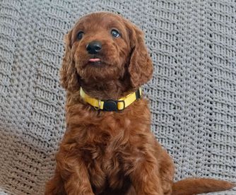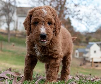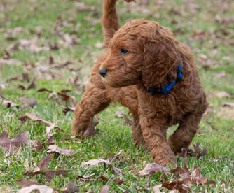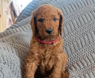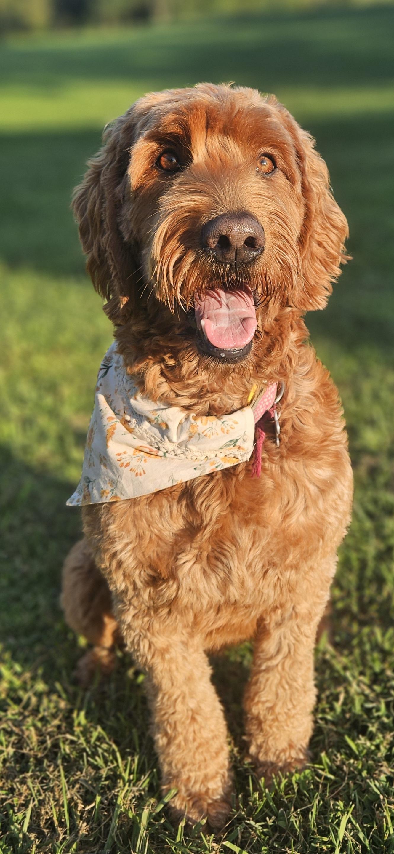 Penny is a Standard F1 Goldendoodle with wavy hair. She's exceedingly smart and athletic. She loves to play fetch as well as games that teach her new tricks and commands. She is a fantastic momma with the sweetest personality and in great health. Overall, she's the perfect family pet!