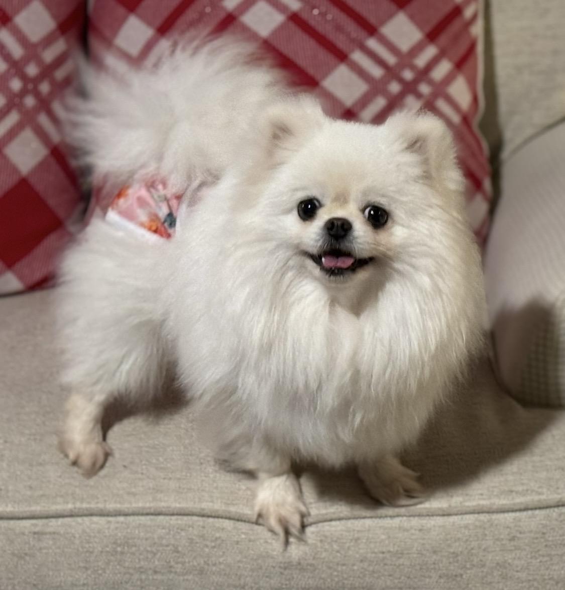 Ling Ling is a female Pomeranian. Carefully selected as a great representative of her breed, Robbie decided to make her part of their program. Robbie has passed Good Dog’s screening process, which involved a review of their breeding practices, environment, and the mental and physical health of their dogs.