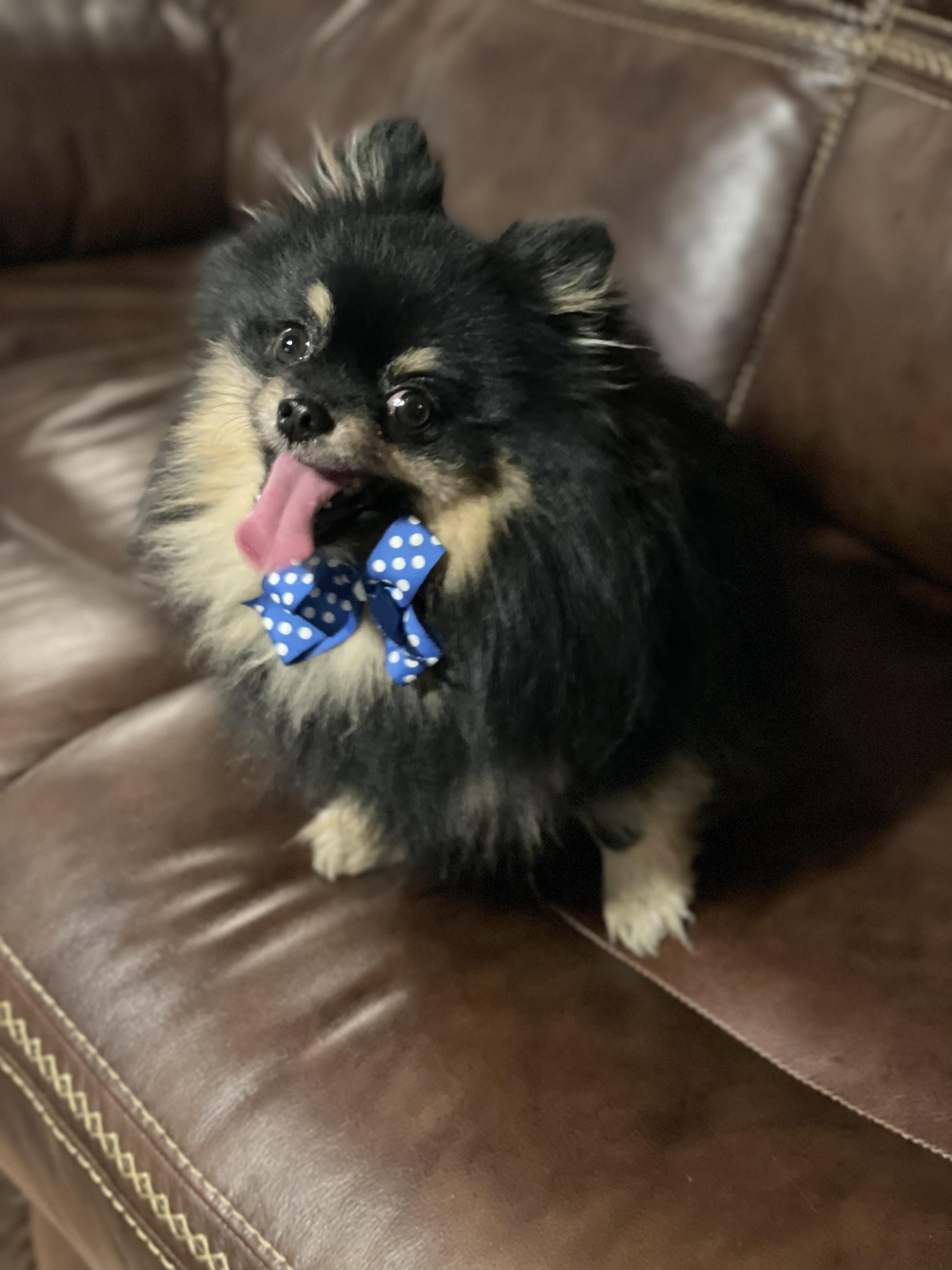 Blackie Chan is a male Pomeranian. Carefully selected as a great representative of his breed, Robbie decided to make him part of their program. Robbie has passed Good Dog’s screening process, which involved a review of their breeding practices, environment, and the mental and physical health of their dogs.