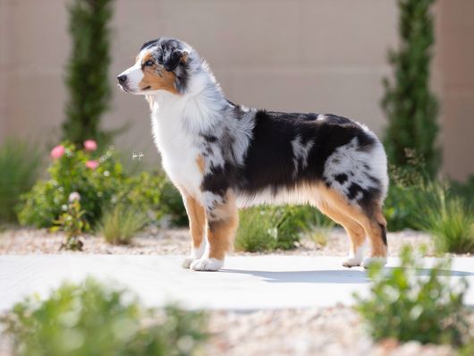Our puppies include blue merle and black tri-color. Colors will vary depending on the parent dogs.