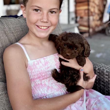 Alexis was incredibly responsive and helpful with all of our questions. As this was our first family puppy, she took the time to share her experience and made us feel confident and prepared. Piper is absolutely wonderful—she came to us already pre-crate trained and was sleeping through most of the night during her first week home. She’s so loving, which speaks volumes about the caring environment she came from. We’re beyond happy to have her as part of our family!