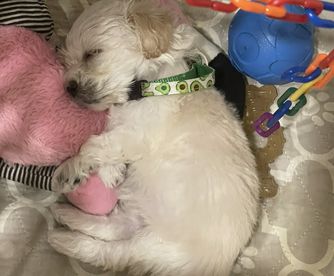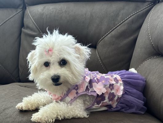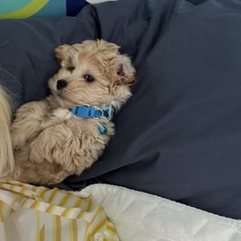 We had a wonderful experience with Boujeepups! I was impressed with the care Andrea gives her pups and even more impressed with how carefully she selects her buyers. This is not a breeder just looking to make a sale. She has a process to approve buyers and ensure they will provide a good environment and continue the level of care she maintains. We bought a precious 4-month old Maltese-Poodle pup from her. Our little Nova has an amazing disposition, slept through the night her first night home, and takes great naps in the her crate throughout the day. Andrea starts crate training at three weeks old, and it makes such a difference! We are happy with our selection in breeder and pup! Also happy to share that Nova gets along great with Snickerdoodle, our 3-year-old Bichon Poodle, and does well with our 11-year-old daughter. Perfectly family dog! ;)