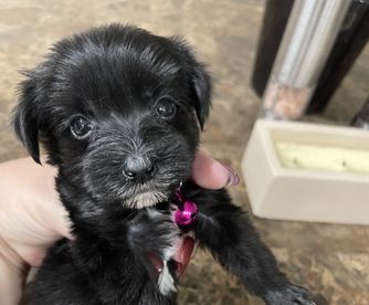 Our Maltipoo puppies include black, brown, white, and black & tan tri-color. Yorkipoo puppies include black and tan, black, and black and gold. Colors will vary depending on the parent dogs.
