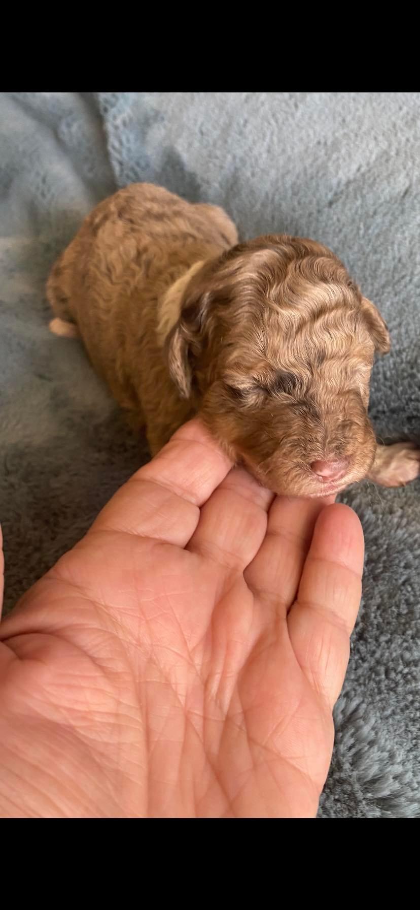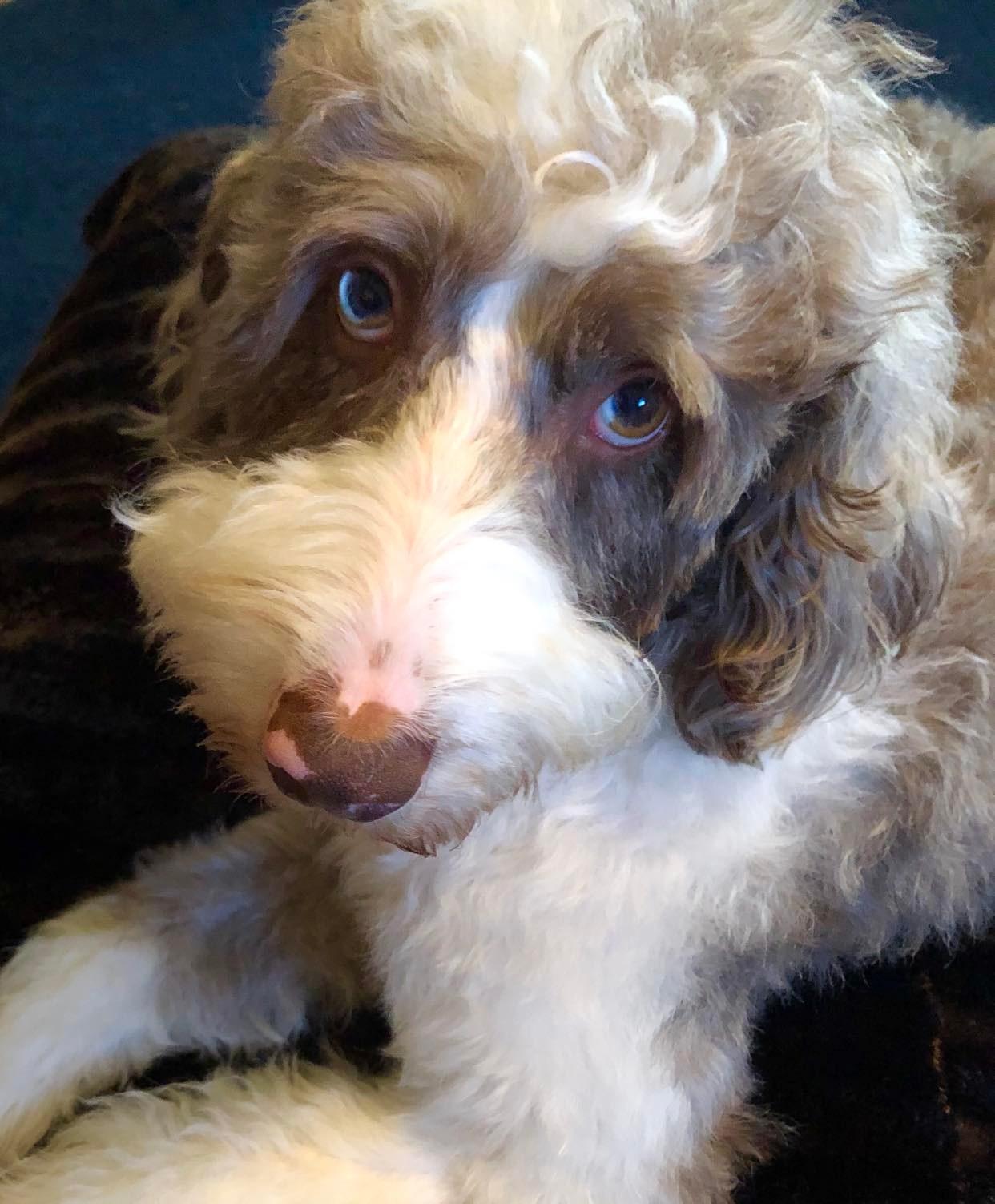 Honey is a female Aussiedoodle. Carefully selected as a great representative of her breed, Karen decided to make her part of their program. Karen has passed Good Dog’s screening process, which involved a review of their breeding practices, environment, and the mental and physical health of their dogs.