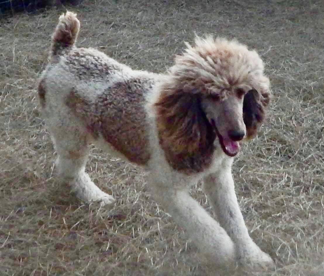 Ginger is a white and red parti st. poodle. She is embark tested/clear.
