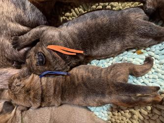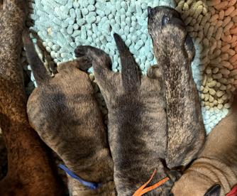 Our puppies include red fawn, red, fawn brindle, fawn, and red brindle. Colors will vary depending on the parent dogs.