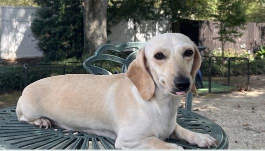 Jazzy is a Clear Cream Smooth Miniature Female Dachshund with a delightful , gentle and loving disposition. She is health tested through Wisdom Panel and passed. She is an absolute delight.