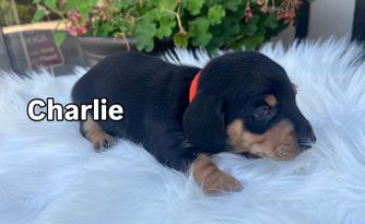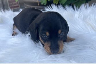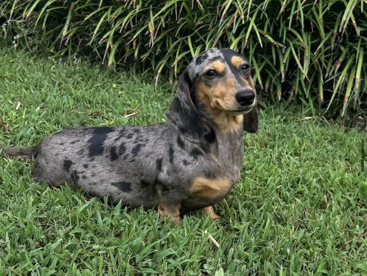 Lina is a Black/Cream Dapple Miniature Smooth Dachshund Female. She has an extremely kind, confident, loving and cuddly personality.