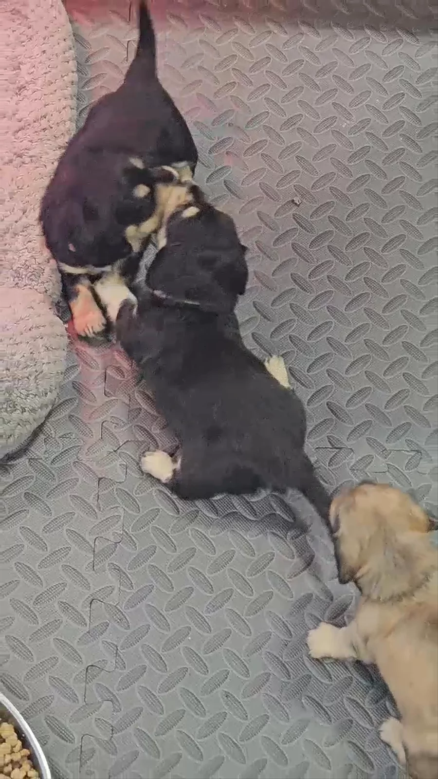 Playing, Growling, Wagging And Eating Their Mush