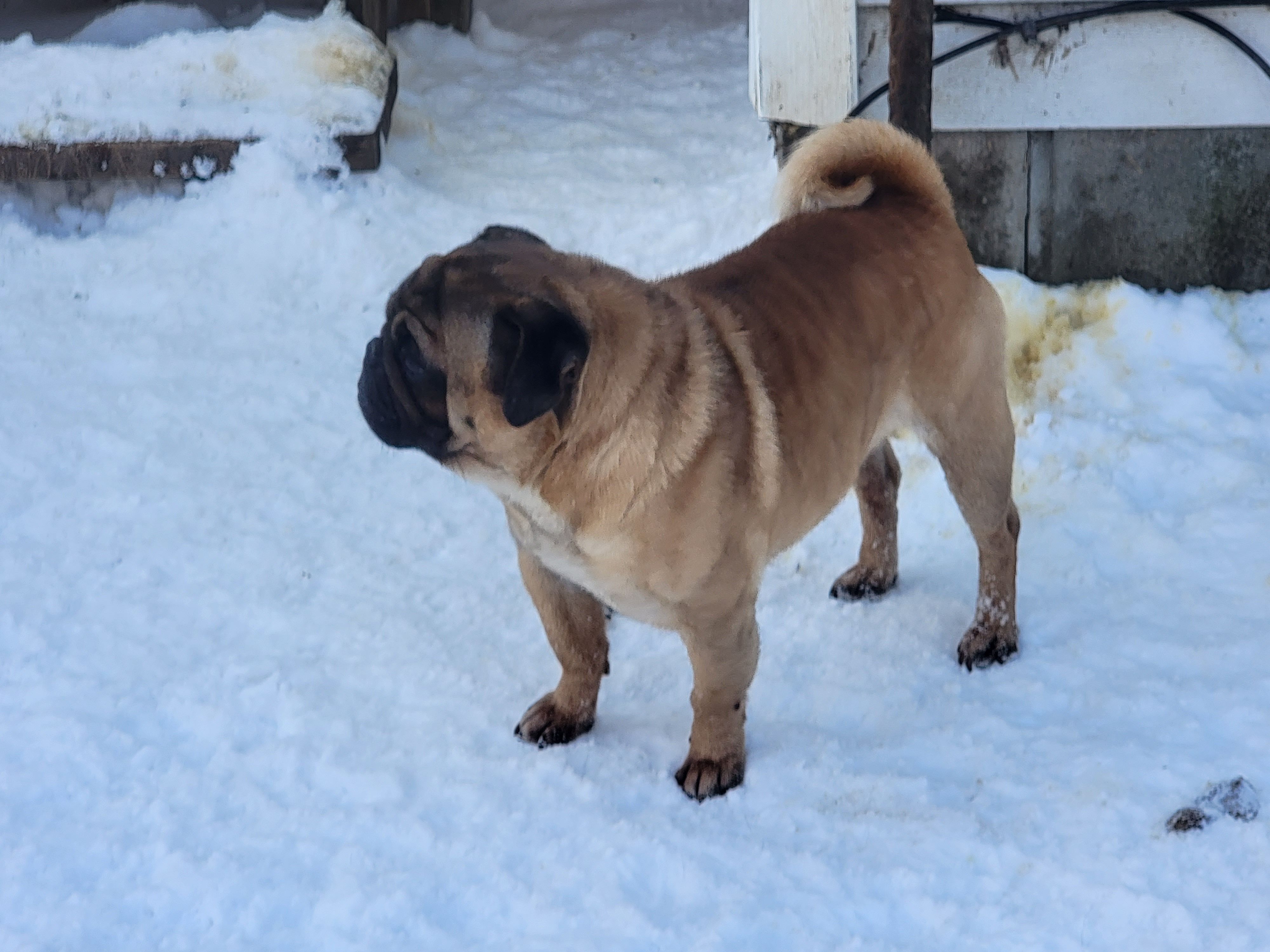 Yeti is a male Pug. Carefully selected as a great representative of his breed, Alissa decided to make him part of their program. Alissa has passed Good Dog’s screening process, which involved a review of their breeding practices, environment, and the mental and physical health of their dogs.