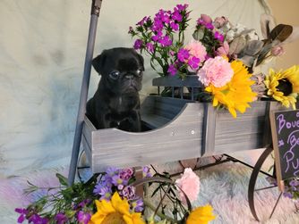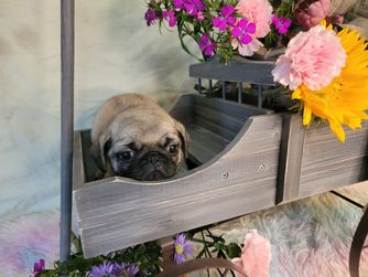 I'm Alissa J., the breeder behind Bovey Bed Pugs located in Bovey, MN. Our pugs are bred to meet standard both in color and temperament. Our pups are raised in our home and loved dearly. We are dedicated to always providing our buyers and our puppies with a positive experience, which includes remaining committed to responsible practices when it comes to breeding, training, and rehoming our puppies.