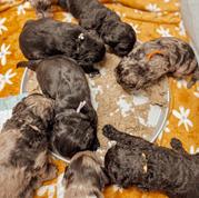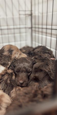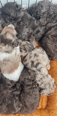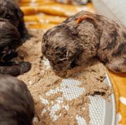 Our puppies include cream, apricot, red, chocolate, black, phantom, merle, and parti. Colors will vary depending on the parent dogs.