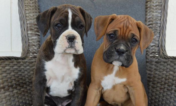 Our puppies include fawn and brindle. Colors will vary depending on the parent dogs.