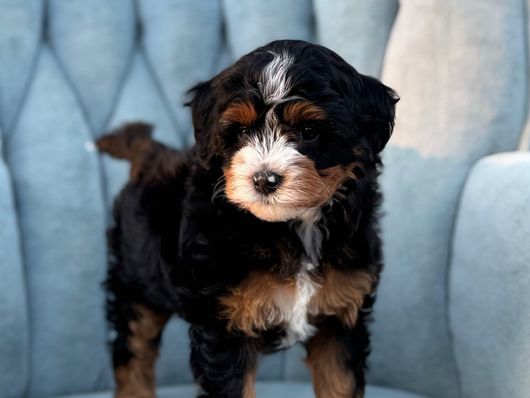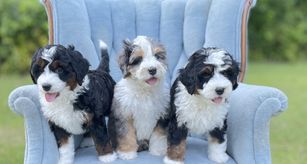 Our Bernedoodle puppies include tiny, mini, and medium sizes. Sizes will vary depending on the parent dogs.