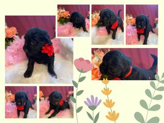 Goldendoodle puppies include cream, apricot, and black. Colors will vary depending on the parent dogs.