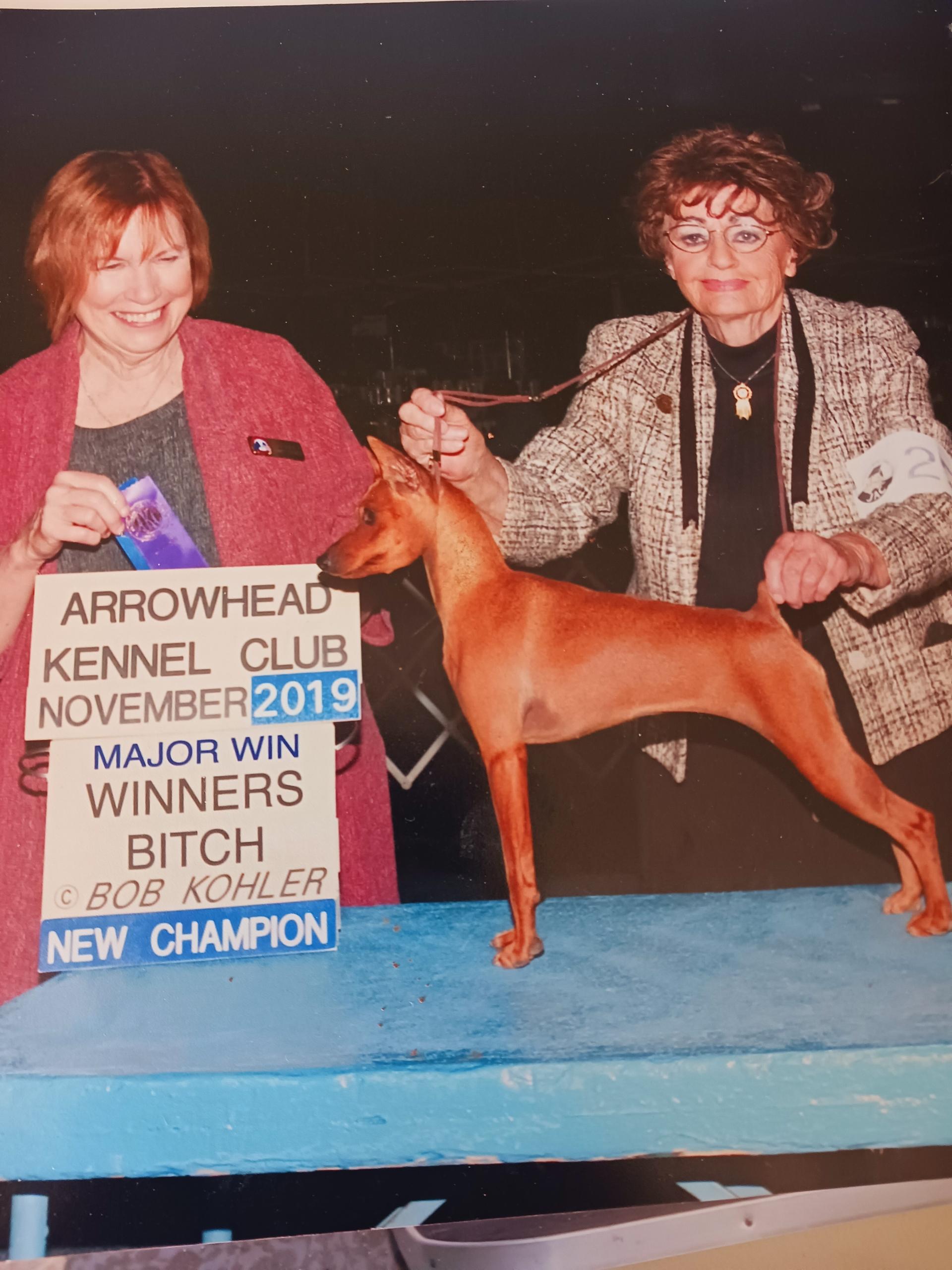 Tasha is a female Miniature Pinscher. Carefully selected as a great representative of her breed, Wendy decided to make her part of their program. Wendy has passed Good Dog’s screening process, which involved a review of their breeding practices, environment, and the mental and physical health of their dogs.