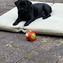 RubySue is a female Pug. Carefully selected as a great representative of her breed, Cynthia decided to make her part of their program. Cynthia has passed Good Dog’s screening process, which involved a review of their breeding practices, environment, and the mental and physical health of their dogs.