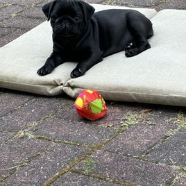 Peggy is a female Pug. Carefully selected as a great representative of her breed, Cynthia decided to make her part of their program. Cynthia has passed Good Dog’s screening process, which involved a review of their breeding practices, environment, and the mental and physical health of their dogs.