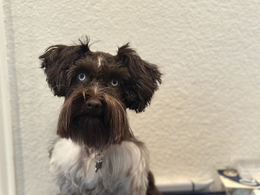 Dove is a female Miniature Schnauzer. Carefully selected as a great representative of her breed, Amber & Chris decided to make her part of their program. Amber & Chris has passed Good Dog’s screening process, which involved a review of their breeding practices, environment, and the mental and physical health of their dogs.