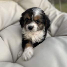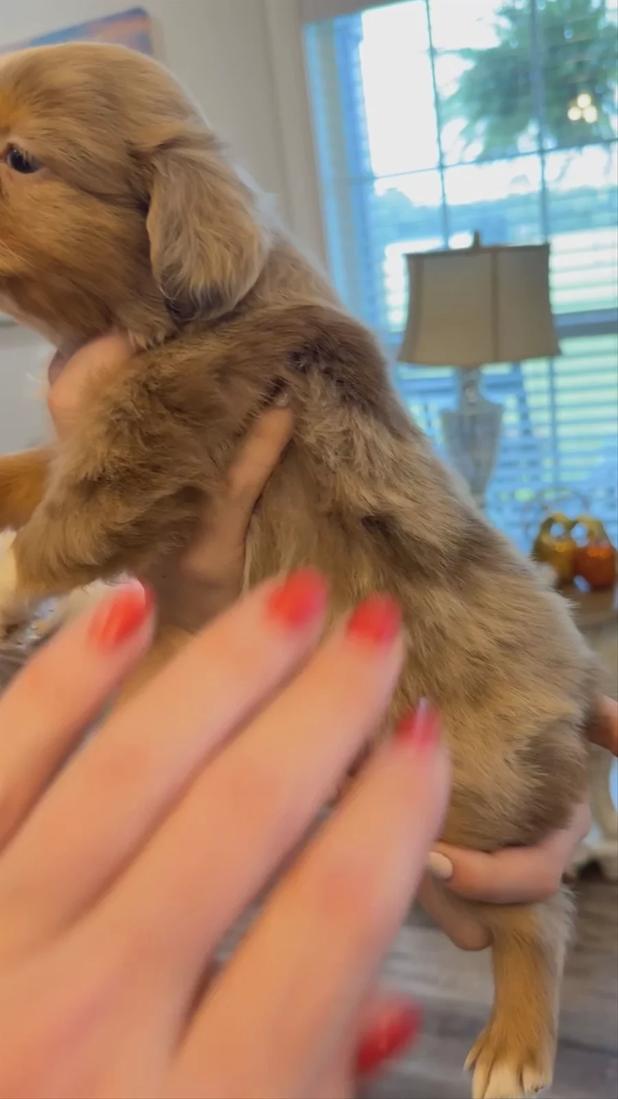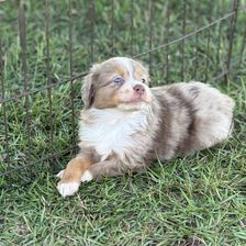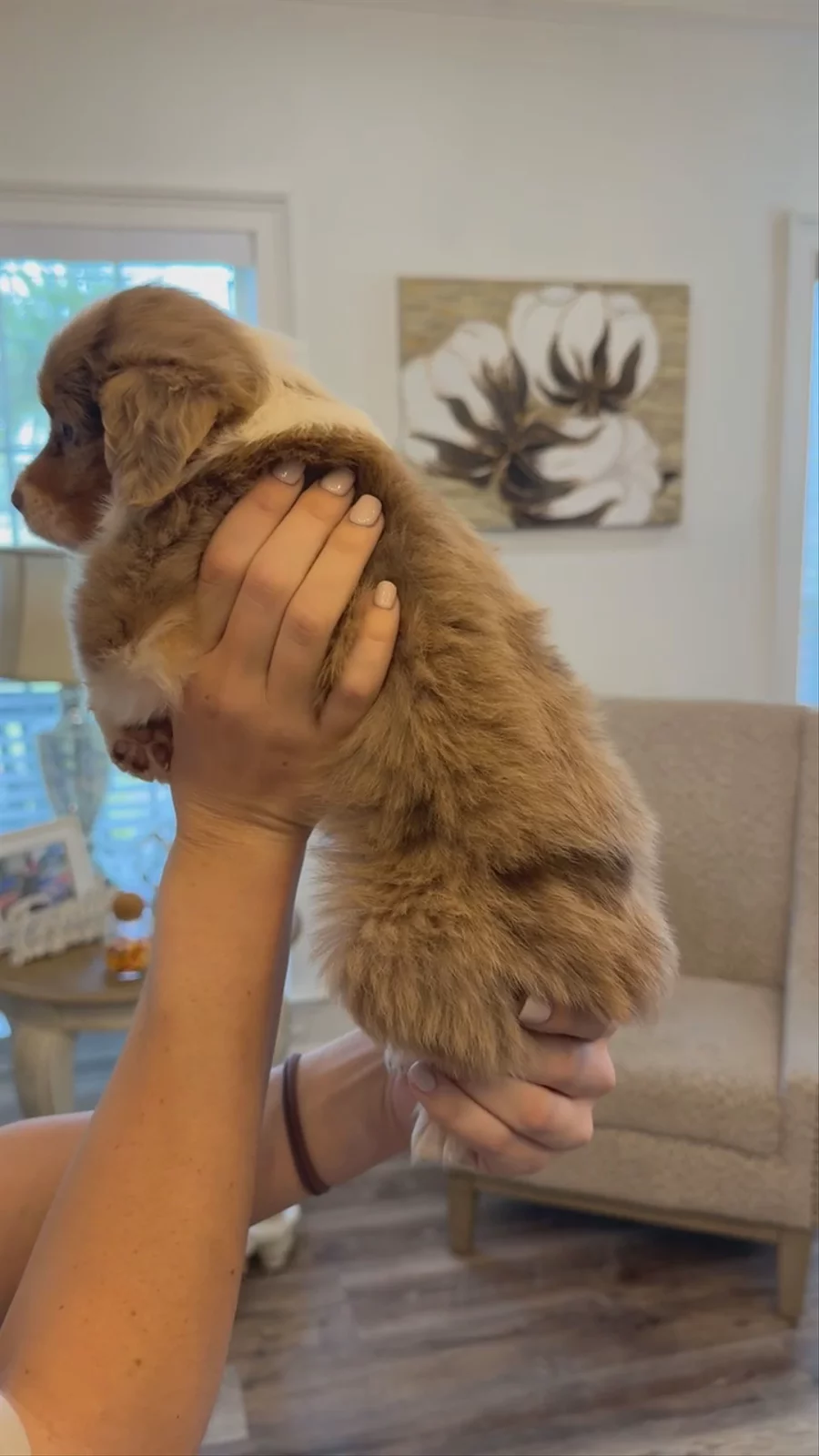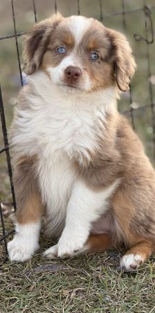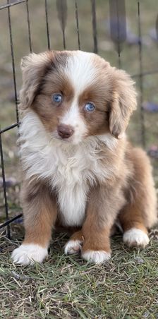 Our Miniature Australian Shepherd puppies include blue merle, black tri, red tri, and red merle. Toy Australian Shepherd puppies include black tri, blue merle, red merle, and blue tri. Goldendoodle puppies include cream, apricot, and red. Aussiedoodle puppies include blue merle and black and white. Colors will vary depending on the parent dogs.