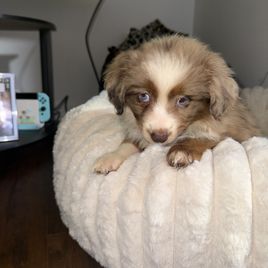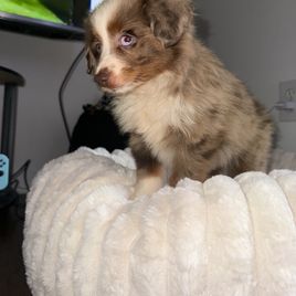 The entire process to finding my puppy through Brandilyn- was a wonderful experience! She was very responsive to my questions & concerns. Her caring heart towards her dogs was transparent. My Toy Aussie was 8 weeks old when we got her & she has been amazing. She was already going potty outside & had not messed in her crate or the house. She loves cuddles, eats her food and water from a bowl without problems. Definitely get your puppy from Brandilyn, for quality care & great dogs.