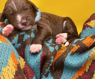 Our puppies include brown and white, blue merle, red merle, and black and white. Colors will vary depending on the parent dogs.