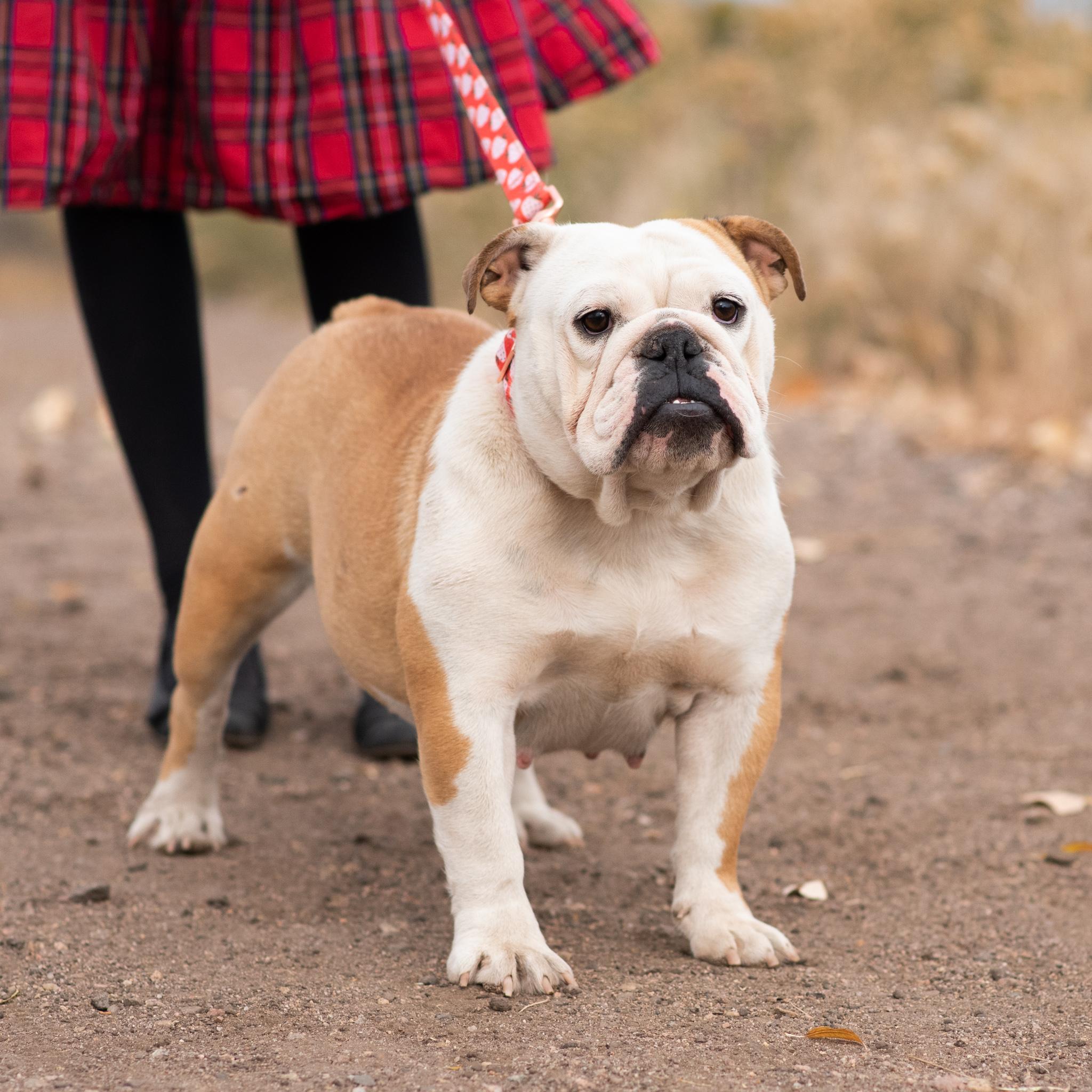 Ollie is a very fun, playful, and active girl, completely healthy and clear and easy breather (extremely important as a Bulldog). She weighs about 45 pounds. Ollie loves attention and being with people. We couldn't resist giving her the name "Olive You" (I Love You) because of how loveable a bulldog she really is!
