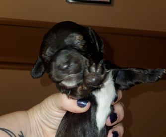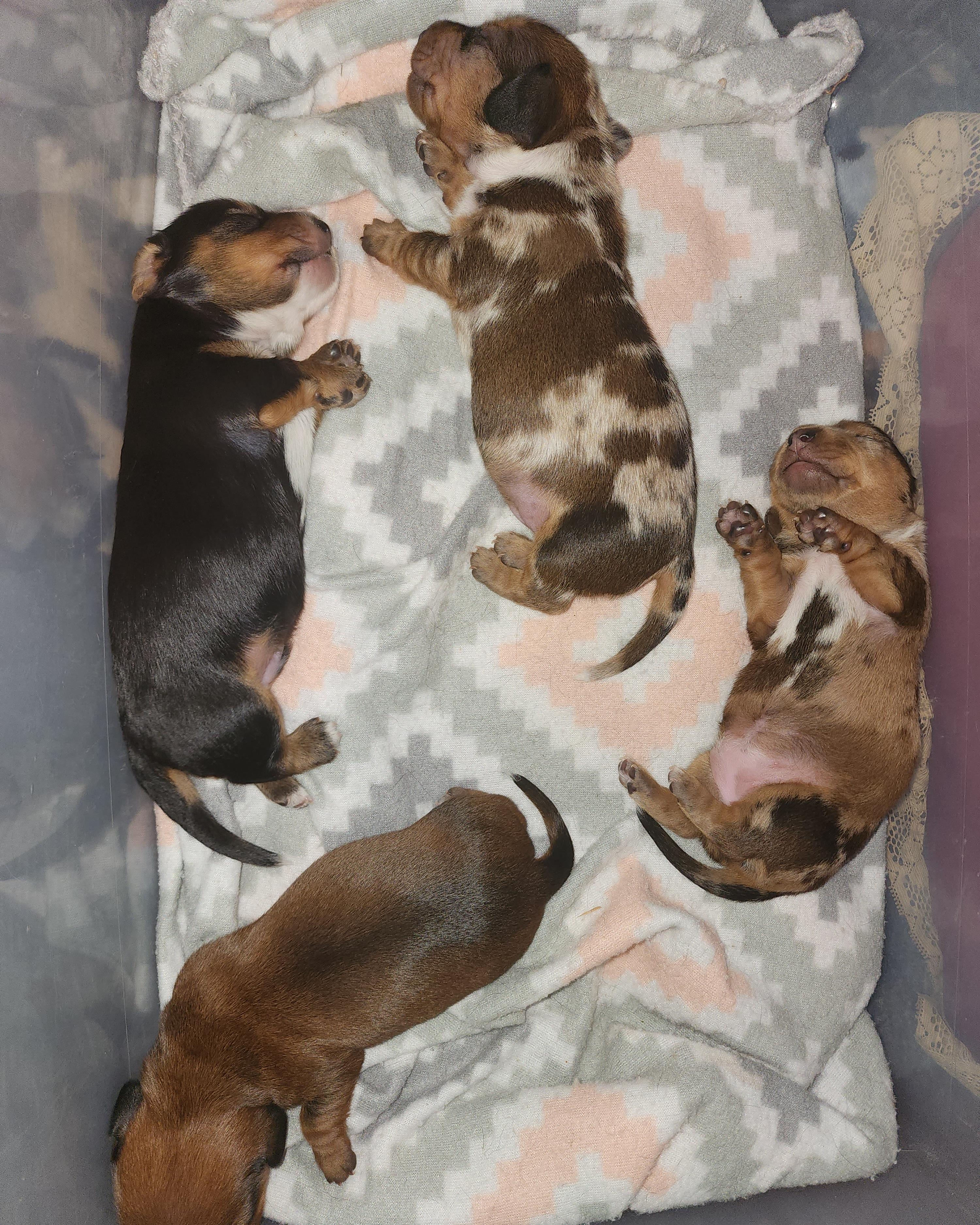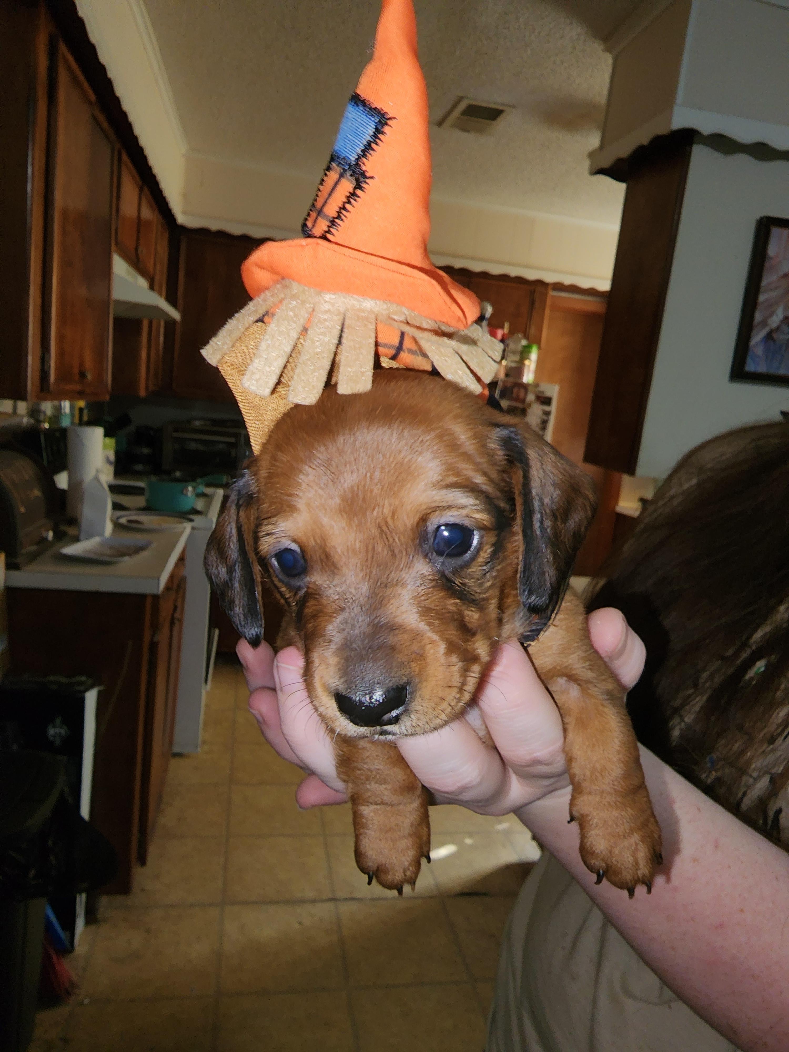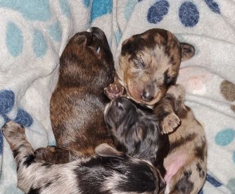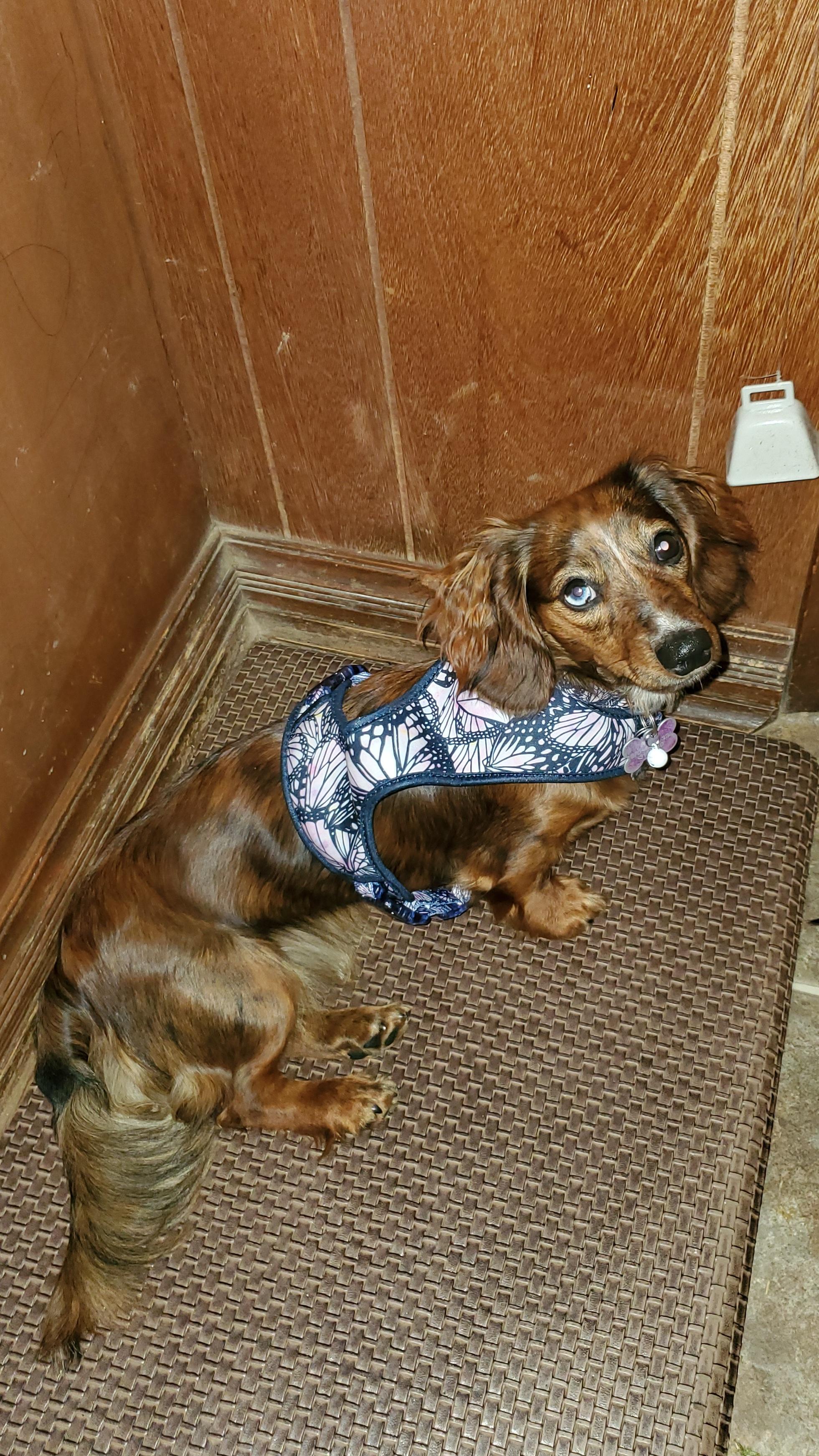 I offer so much in caring for the puppies and teaching them to use the potty pads or go outside, teaching them basic tricks, not confining them much, many nights of snuggling and getting loves, playing with them all of the time, taking tons of videos and pictures of them as they grow printing off the best ones in a small photo album for the family along with one in a pet picture frame. I strive to make it my mission to gather up all important documents, information, certificates, registry, microchip info, as I do microchip them at 8 wks, pedigree bg, embark results, proof of champion bloodline, trick tips, and so much more put into booklets for later reading. I include a dachshund tote bag full of treats/food, blanket, bath towel, pictures, toys, and this litter I even bought a sweater for the colder days & nights we are having. Each one where's a collar too. I hope I didn't forget anything! Let's just say I take a lot of time and pride raising my litters. I do a lot of research for the best family to get one of my puppies.