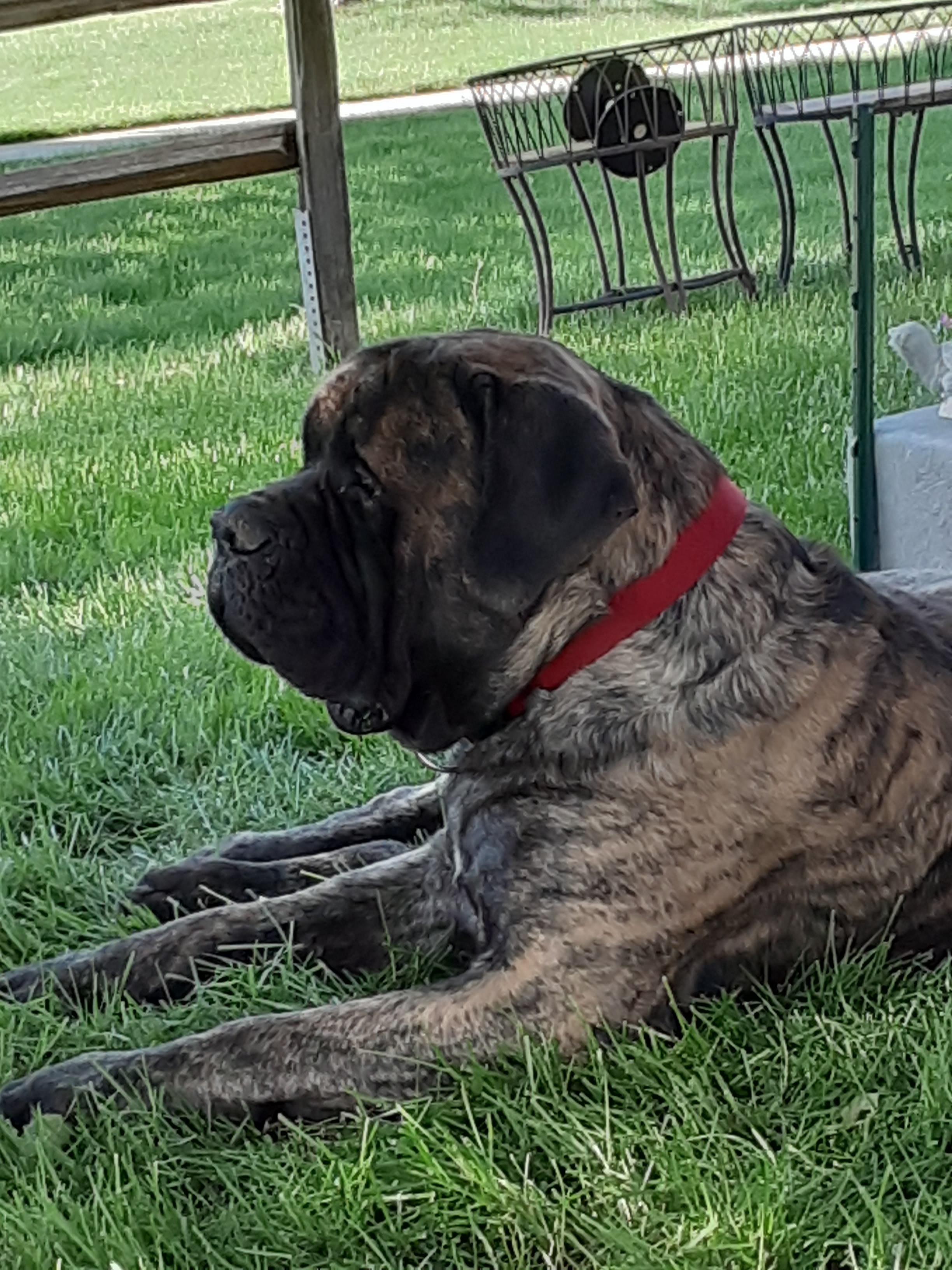 Shire is a male Mastiff. Carefully selected as a great representative of his breed, Rebecca decided to make him part of their program. Rebecca has passed Good Dog’s screening process, which involved a review of their breeding practices, environment, and the mental and physical health of their dogs.