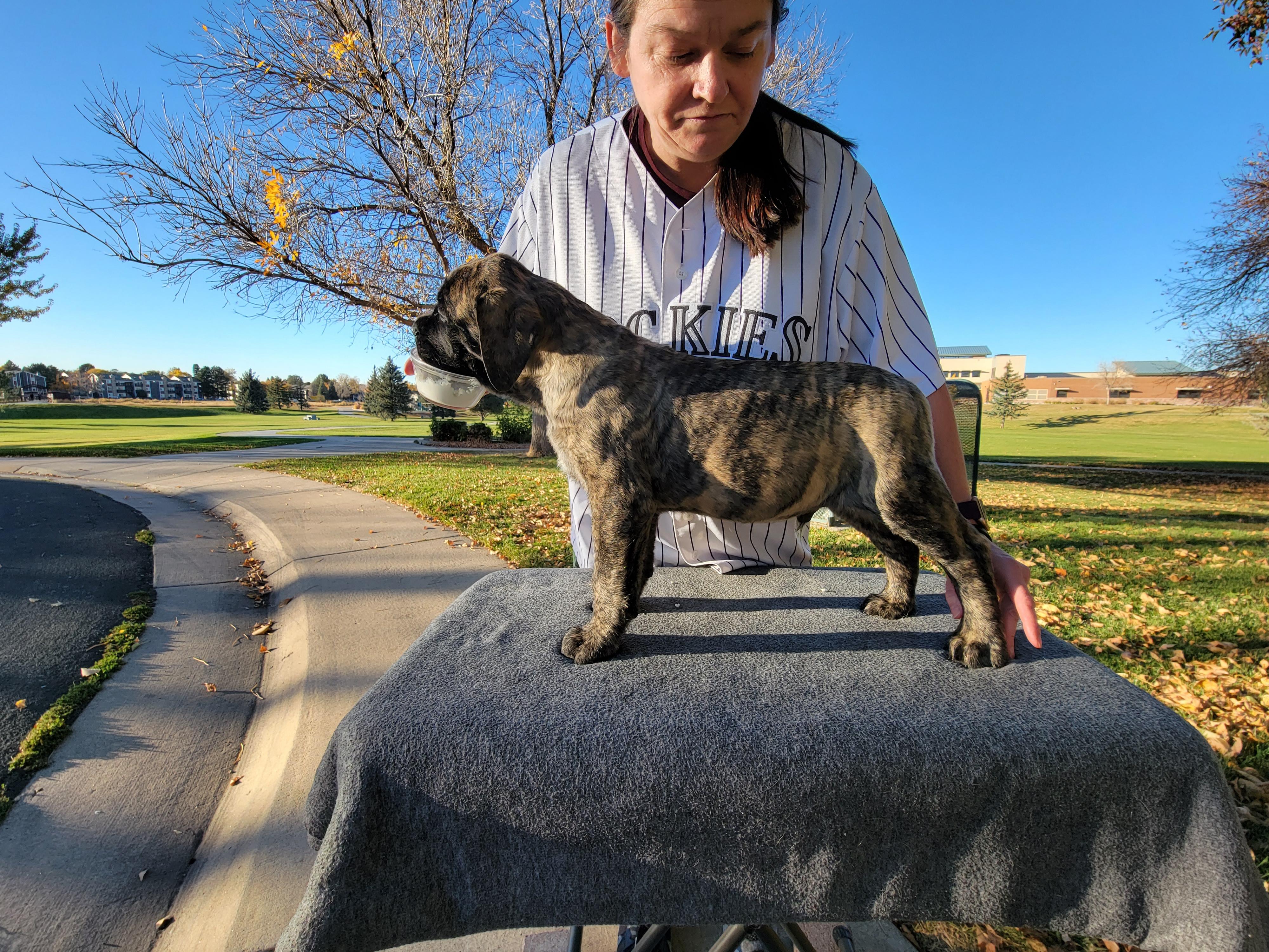 I'm Rebecca B., the breeder behind Bratay Mastiffs located in Aurora, CO. Our goal is to ensure every dog that comes from our program is set up to live a happy and healthy life and is prepared for its future role when it leaves our care. We provide each of our pups with lots of socialization and love, and we are dedicated to maintaining responsible breeding policies.
