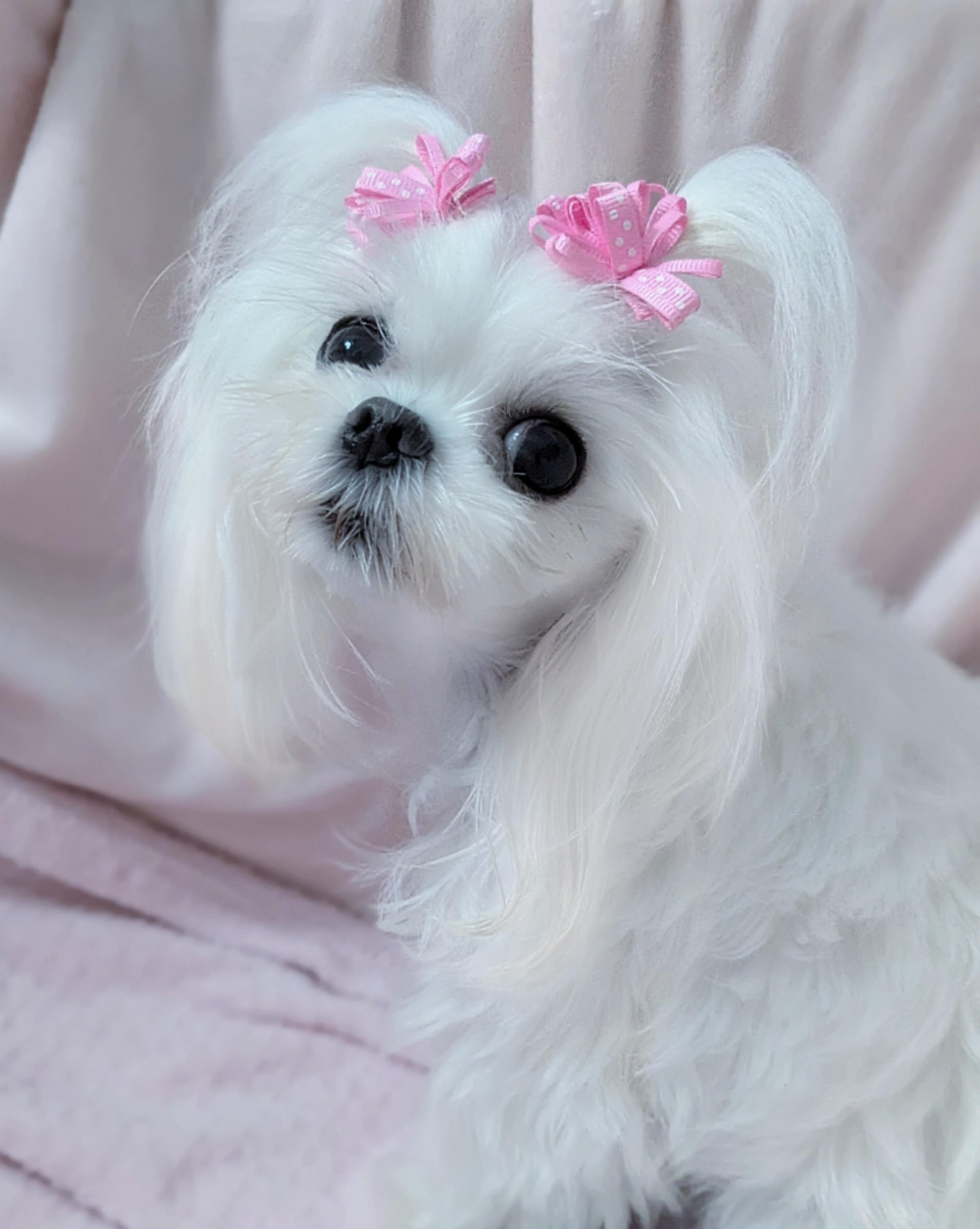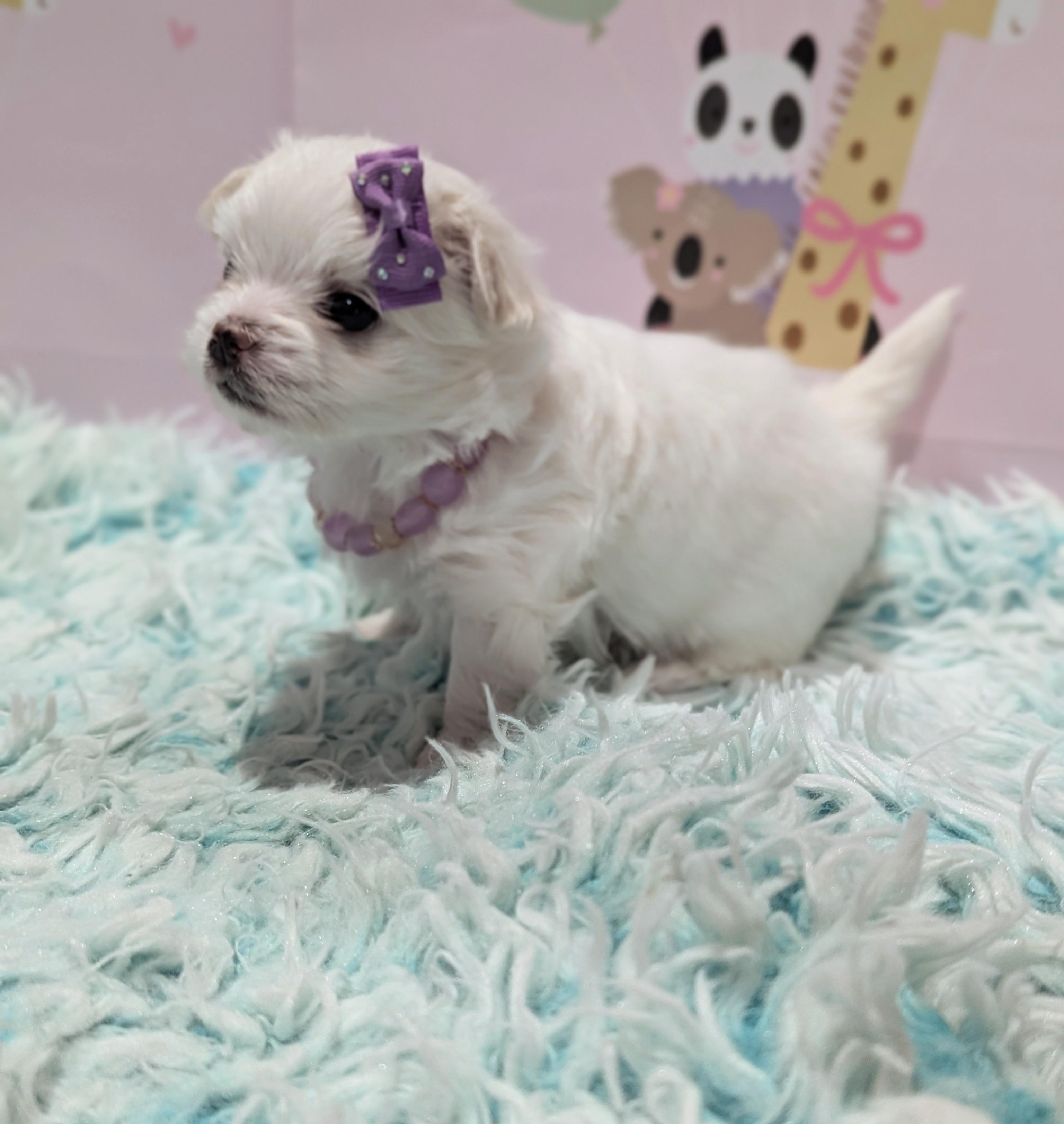 Violet is second generation morkie, third generation born in our home. Her lines are from small babydoll yorkies and all Korean maltese. She's a super sweet gentle girl.