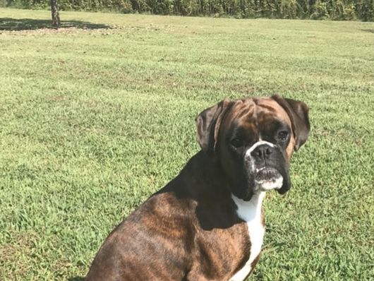 Bristol is a female Boxer. Carefully selected as a great representative of her breed, Jenny decided to make her part of their program. Jenny has passed Good Dog’s screening process, which involved a review of their breeding practices, environment, and the mental and physical health of their dogs.