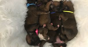 Here at Braun's Boxers, I try to involve my parents in their pups life from the moment they are born. I share pictures and videos daily. I always include their weekly weights, try to take pictures and videos of the pups "firsts" when eyes open, walking, baths, and going outside. I do bell training, work on some potty training and during summer litters, do swimming lessons with our pups.
