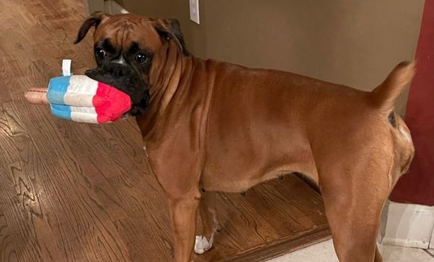 Juneau is a female Boxer. Carefully selected as a great representative of her breed, Rebecca decided to make her part of their program. Rebecca has passed Good Dog’s screening process, which involved a review of their breeding practices, environment, and the mental and physical health of their dogs.