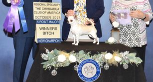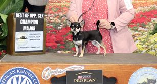 I'm Emily B., the breeder behind Bravo Chihuahuas located in Kansas City, MO. My name is Emily Buller, I am a small exhibitor and Preservation Breeder of Smooth and Long coat Chihuahuas. I am located in the Kansas City area. I breed to the AKC standard, with an emphasis on health and temperament. I only breed AKC Chihuahuas and only have a few litters yearly. All of my breeding dogs are health tested and receive CHIC certification. My dogs are a huge part of my family and live in the house with my husband and myself. I received my AKC Breeder of Merit in January 2019. ​.