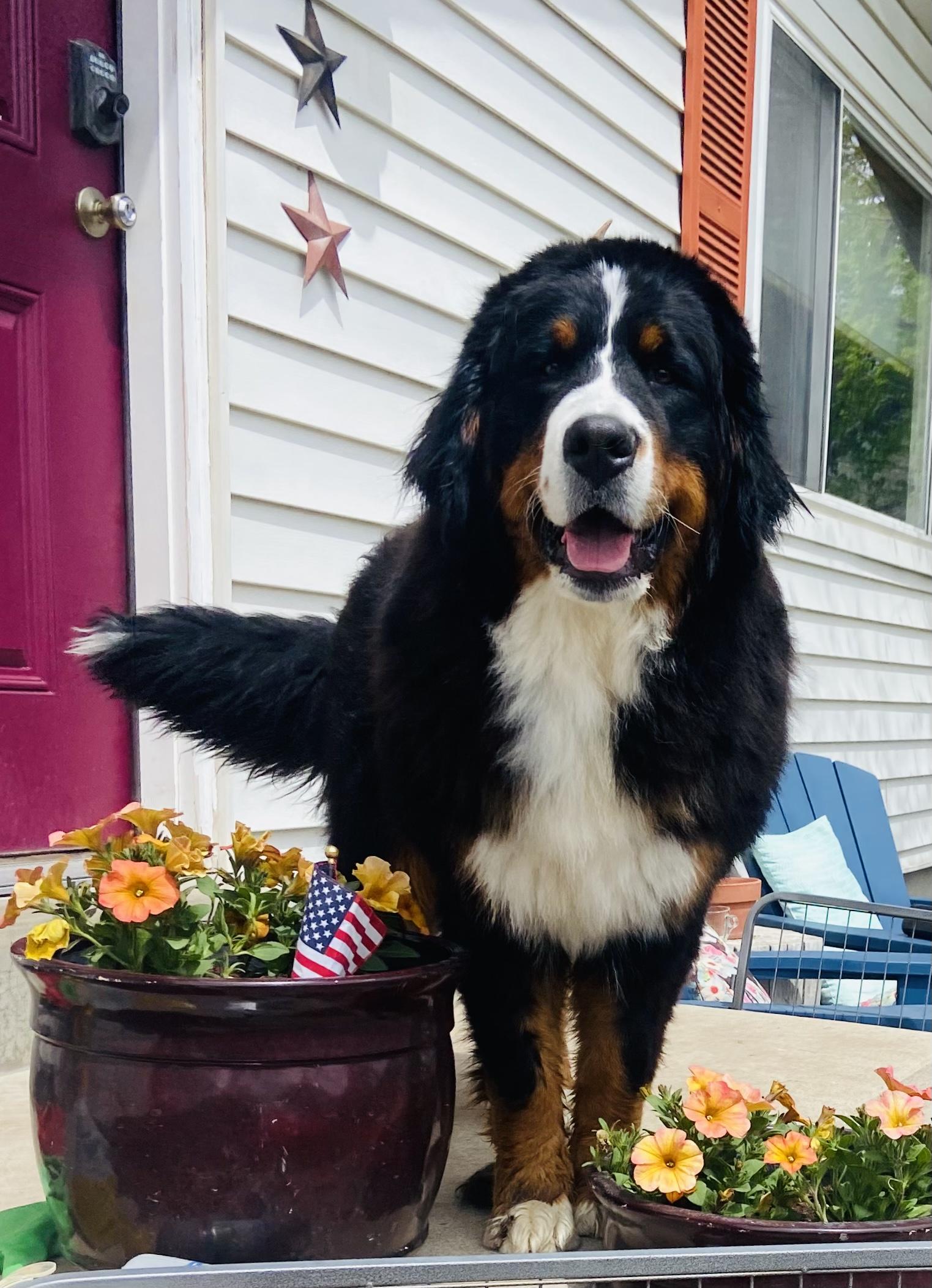 Boomer is a male Bernese Mountain Dog. Carefully selected as a great representative of his breed, Jen decided to make him part of their program. Jen has passed Good Dog’s screening process, which involved a review of their breeding practices, environment, and the mental and physical health of their dogs.