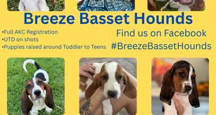 I'm Maria D., the breeder behind Breeze Basset Hounds located in Gulf Breeze, FL. Our pups are AKC/full registration rights, genetically tested, 1yr health guarantee, UTD on shots, & raised around toddlers-teens. Located in Gulf Breeze, FL. 5 minutes from the Gulf of Mexico. Why not turn your puppy pickup into a beach getaway? Come for the views, leave with a best friend.