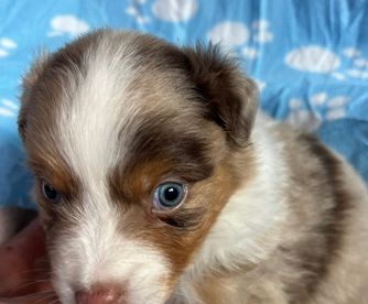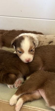New litter at 4 weeks. Red tri and red Merle’s only. More photos to come