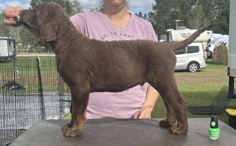 Anna is a female Chesapeake Bay Retriever. Carefully selected as a great representative of her breed, Kellie decided to make her part of their program. Kellie has passed Good Dog’s screening process, which involved a review of their breeding practices, environment, and the mental and physical health of their dogs.
