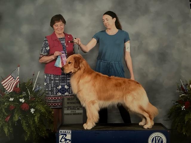 Around that time my mom decided to separate her dogs names from the Driftwood kennel we had originally bought from and she chose Rosewood Goldens after our beloved Rosie. That all took place in Lemont Ill which is 30 miles south west of Chicago. In 2009 I, Lori Selof-Steck got married and moved to the Charlottesville VA area. With that change I decided to distinguish my dogs from my mom's (though I am proud to have the same bloodlines) so we sought a kennel name. My husband came up with the call name Breeze for our first pup we raised together. As well on our commute between Chicago and VA we pass a town called Breezewood so it just fit-Breezewood Kennel it is! My mom, Joyce, passed away due to pancreatic cancer on Oct. 17th 2012. Joyce left a legacy of her unshakable faith, commitment to family and of course her love of animals and desire to breed great Goldens! At the time my mom passed away she had dogs she co-owned and had plans to go forward with breeding. She had signed those dogs over to me and I am happy to say we are continuing those lines!