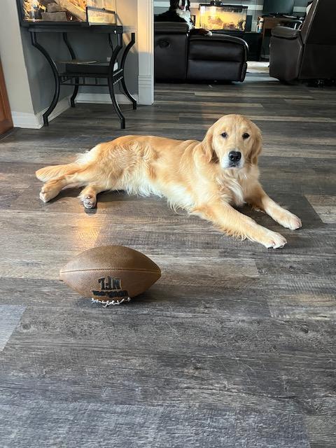 Party is a female Golden Retriever. Carefully selected as a great representative of her breed, Lori decided to make her part of their program. Lori has passed Good Dog’s screening process, which involved a review of their breeding practices, environment, and the mental and physical health of their dogs.