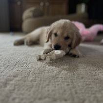 Riezie is a female Golden Retriever. Carefully selected as a great representative of her breed, Lori decided to make her part of their program. Lori has passed Good Dog’s screening process, which involved a review of their breeding practices, environment, and the mental and physical health of their dogs.
