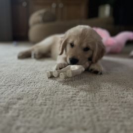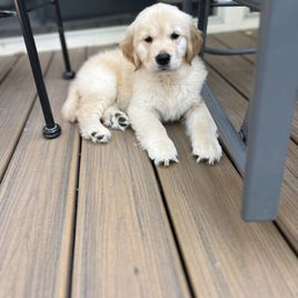 Whimzy is a female Golden Retriever. Carefully selected as a great representative of her breed, Lori decided to make her part of their program. Lori has passed Good Dog’s screening process, which involved a review of their breeding practices, environment, and the mental and physical health of their dogs.