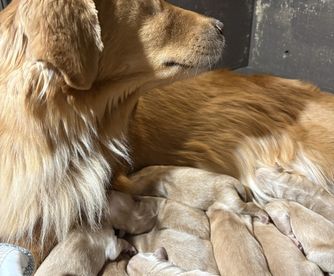 Crescendo is a male Golden Retriever. Carefully selected as a great representative of his breed, Lori decided to make him part of their program. Lori has passed Good Dog’s screening process, which involved a review of their breeding practices, environment, and the mental and physical health of their dogs.