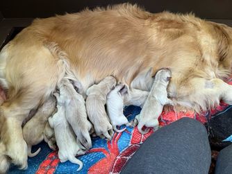 Betty is a female Golden Retriever. Carefully selected as a great representative of her breed, Lori decided to make her part of their program. Lori has passed Good Dog’s screening process, which involved a review of their breeding practices, environment, and the mental and physical health of their dogs.