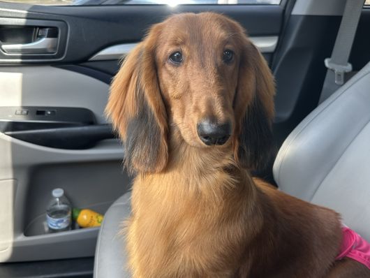 Biscotti is a beautiful Standard red longhaired dachshund. She is currently being shown in hopes of obtaining her AKC CH in conformation. She has a beautiful pedigree out of GCHB Rebel and GCH Edward.