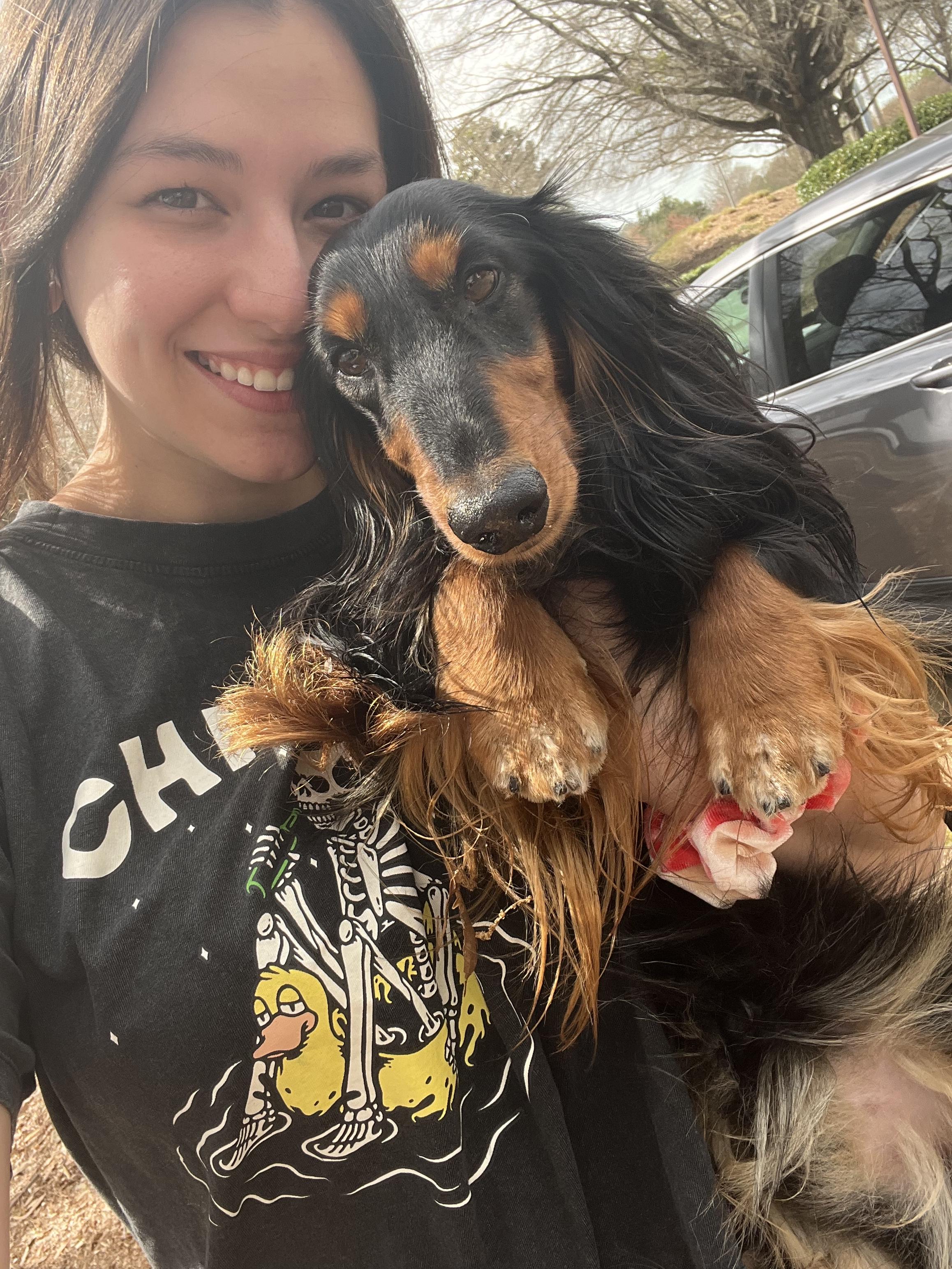 Blossom is a female Dachshund. Carefully selected as a great representative of her breed, Emily decided to make her part of their program. Emily has passed Good Dog’s screening process, which involved a review of their breeding practices, environment, and the mental and physical health of their dogs.