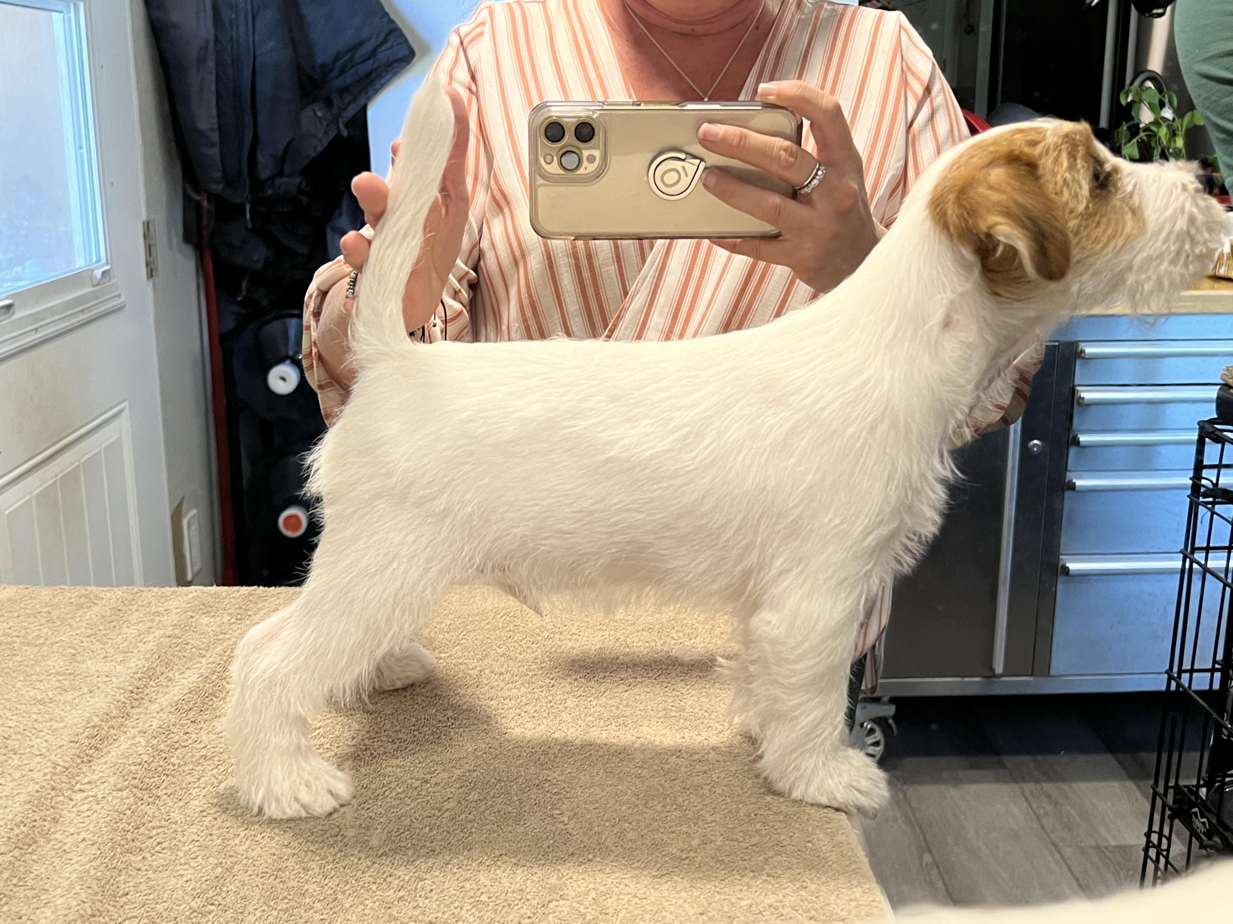 Savvy is a female Russell Terrier. Carefully selected as a great representative of her breed, Bree decided to make her part of their program. Bree has passed Good Dog’s screening process, which involved a review of their breeding practices, environment, and the mental and physical health of their dogs.