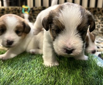 Our puppies include tri-color, white and tan, and white and black. Colors will vary depending on the parent dogs.