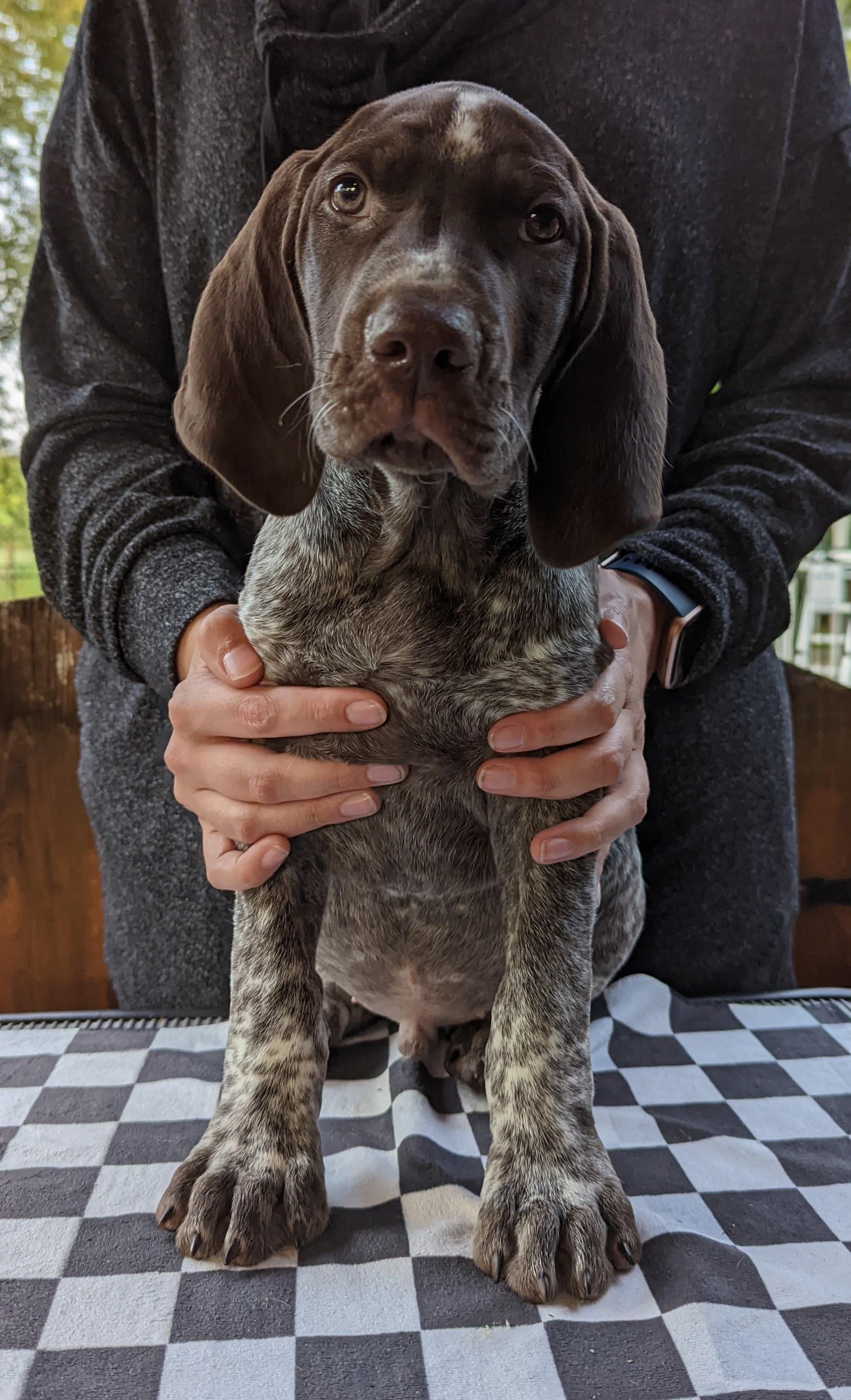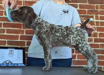 I'm Jaimie R., the breeder behind Breezy Valley German Shorthaired Pointers located in Oley, PA. Our dogs are AKC registered and participate in conformation shows, hunt tests and more! We focus on health, temperament, and adherence to the breed standard. We are dedicated to responsible practices when it comes to breeding, training, and rehoming our puppies.